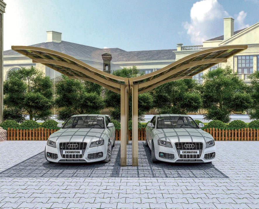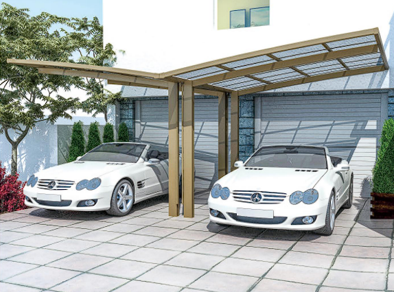 A szerkezet 2 beállóhelyet véd mind eső, mind hó ellen. Az esővíz elvezetését egy ereszcsatorna biztosítja. Hóterhelés 120 kg/m2-ig.